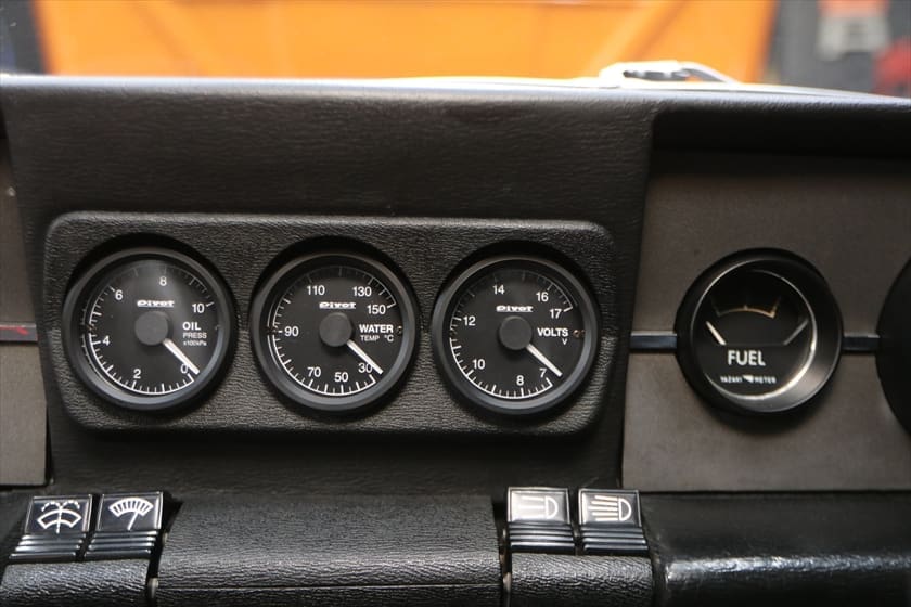 旧車にもマッチする PIVOT製(電圧・水温・油圧)メーター へ変更しました。