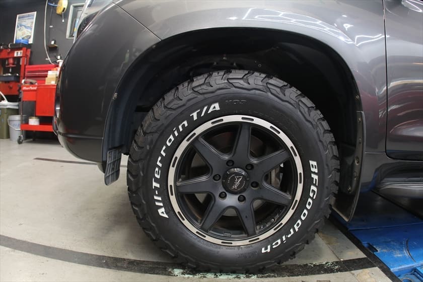 友人の ランドクルーザープラド がタイヤ交換で入庫しました。