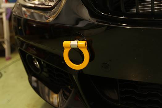 キャリパーのカラーに合わせ、他車種のレーシングフックを前後、加工して