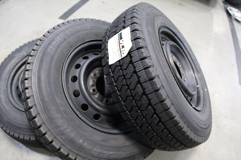 今朝は先輩のハイエースにBSのバン専用スタッドレスへの交換からスタート!
