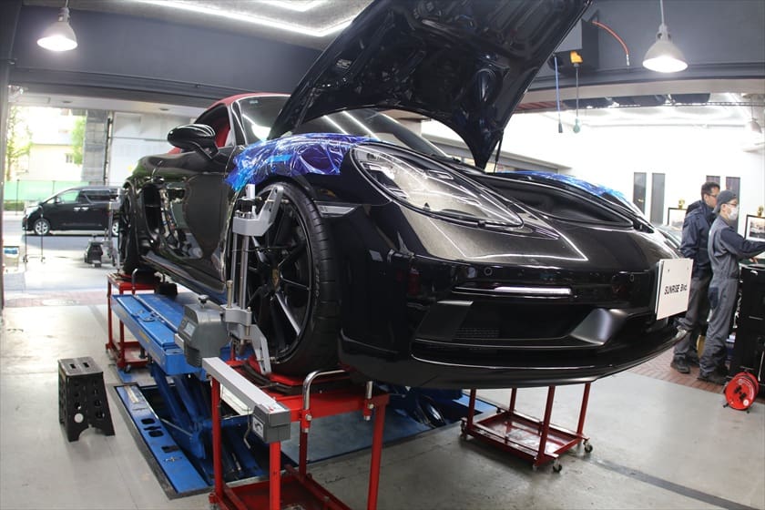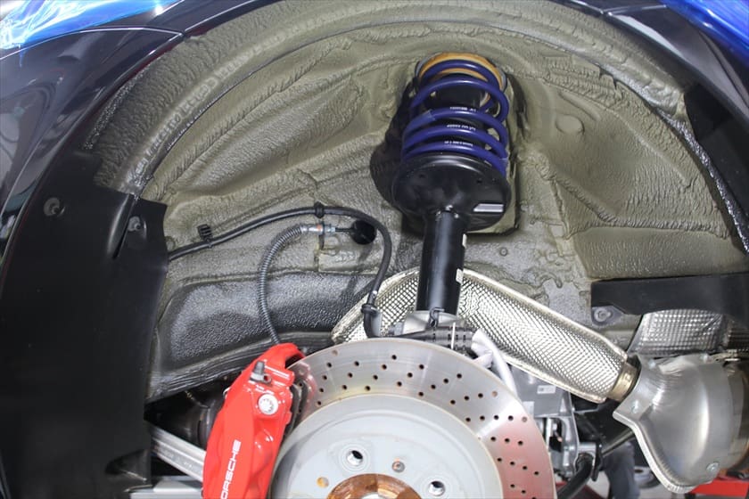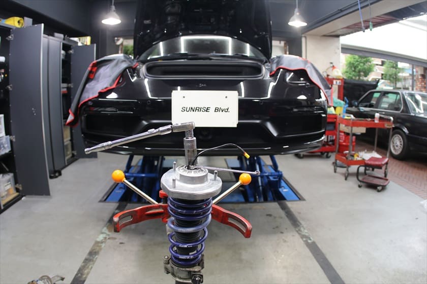 718GTSBoxsterにH&Rのダウンサスを取付させて頂きました。インパクトは使用せずSSTを使って慎重に組込します。GTSはノーマルに比べ約10mmほどダウンしているため、ダウン量は控えめですが、このちょっとでルックスが全然変わります!車高が下がった事でタイヤホイルが引っ込んで見えるため、スペーサーでツライチにセッティング。ロードテストでスプリングを馴染ませてからアライメント調整を行いました。この度はご入庫頂き誠に有難うございます。