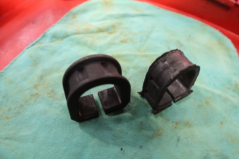 ブッシュの形状も左右で異なり、外径は小さく内径は一回り大きくなっていました。