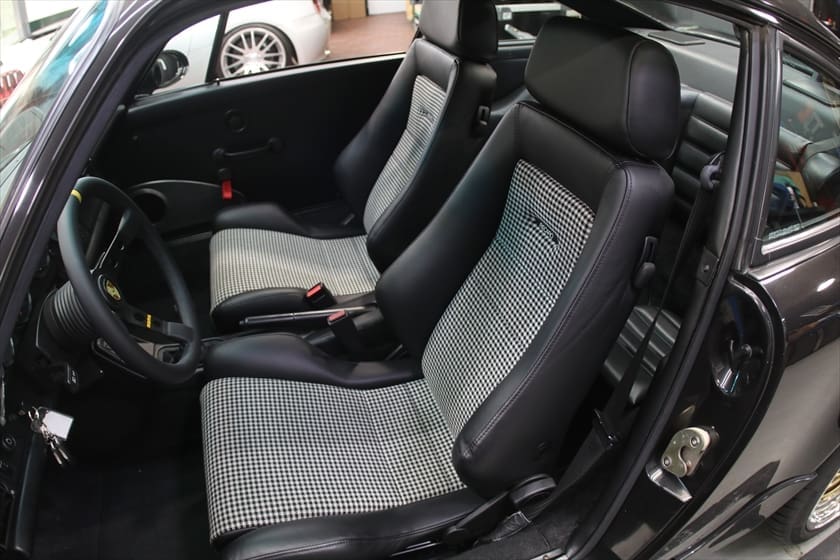 RECARO Classic LX Pepita × MOMOステアリング の組み合わせも雰囲気抜群です。