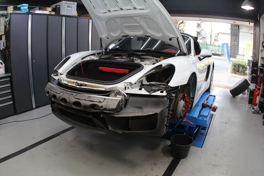エア抜きだけでも大変なので、フロントバンパーを外し、