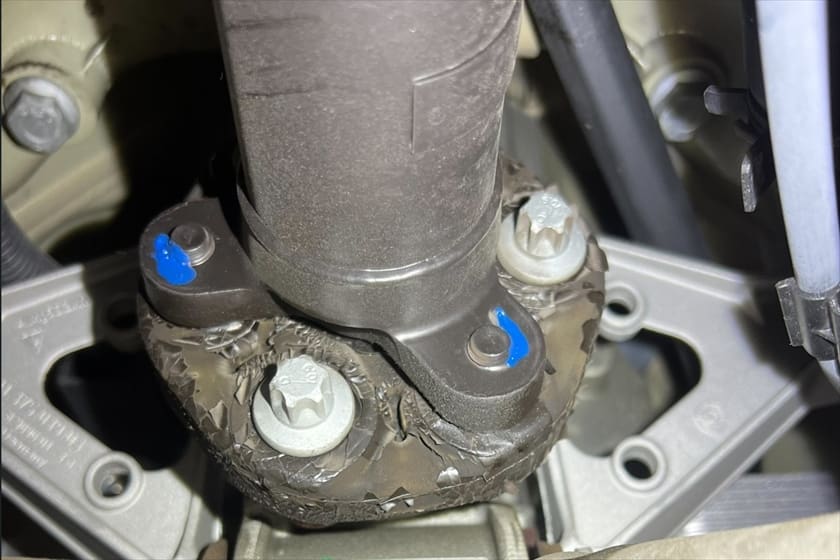 冷却系の修理で入庫中の991ターボ。冷却ラインを調べている時にプロペラシャフトジョイントに