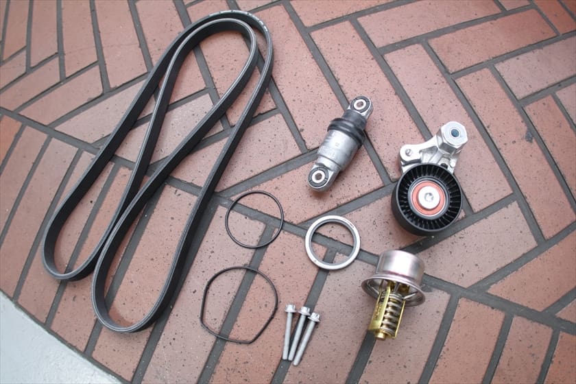 ファンベルトにもダメージが見つかったため、関連部品を一式交換させて頂きました。