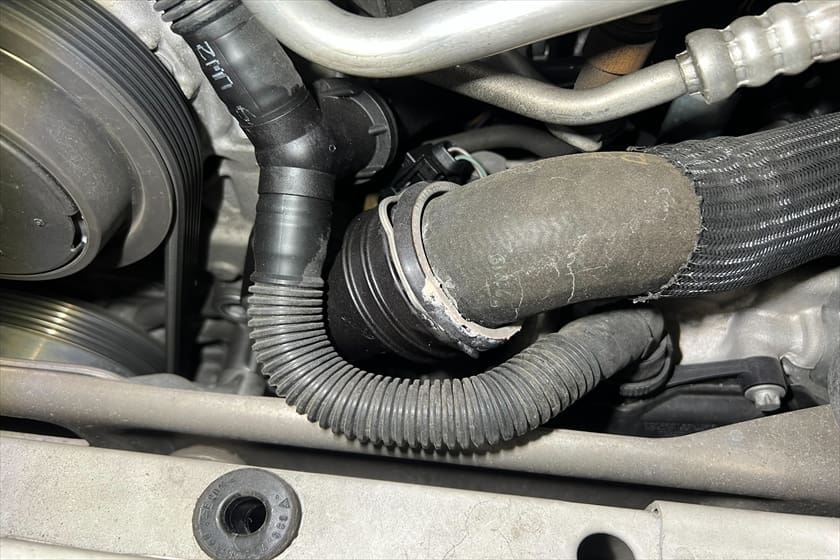 さらにアッパーホースにも漏れた跡があり、確認すると Oリングの劣化 が原因でした。