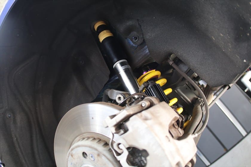 い20mmダウンでセッティング。慣らしが完了後に再度ご入庫頂き、再度車高調整とアライメン