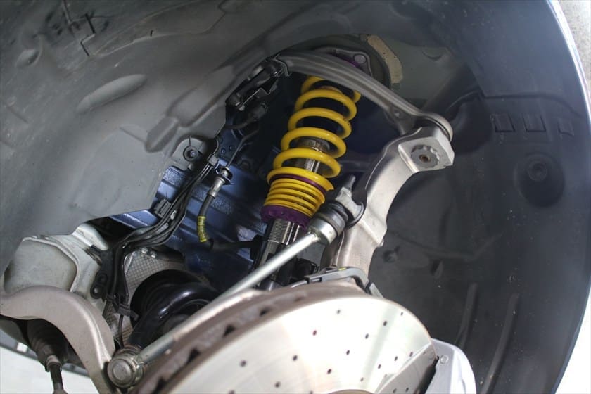 ご入庫頂きました。AMGの腰高のサスペンションが気に入らず、KW Ver3をインストールさせ