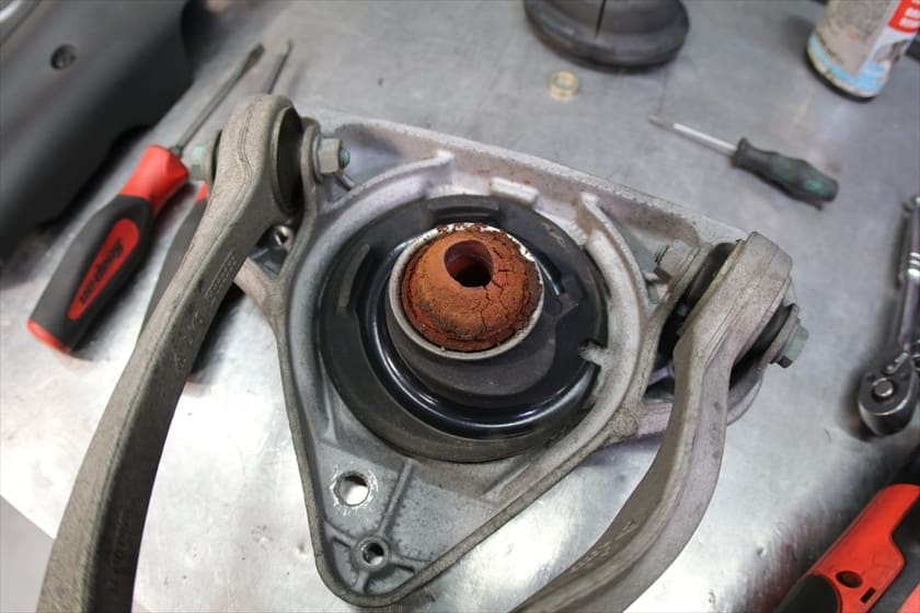 偏心ボルトを動かしてもブッシュの劣化が原因で