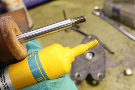 Rショックは先端のネジ部もペイントされている物が多く、そのまま取付すると