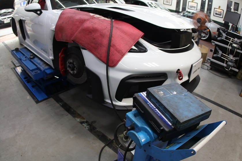 新規のCayman GT4RSは茂木のスポーツ走行を走られており、常連様と隣りのPITだったそうでご紹介で入庫頂きました。茂木はブレーキに厳しいサーキットなので念入りチェックと圧送式の機械でブレーキフルードを交換させて頂きました。10/14のTSUKUBAも宜しくお願い致します! 後ろにチラッと同じようなNew Projectがっ
