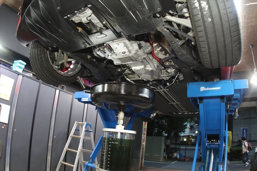 先ずは油脂類の交換からスタート。MOTUL300Vの60L缶が欠品中のため1Lボトルで対応しておりますが