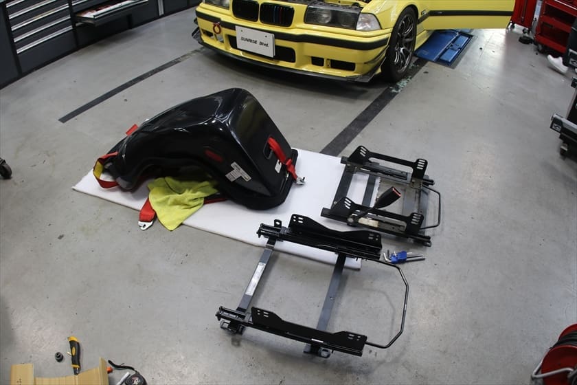 今回は強度計算書のある レカロ純正レール に変更して対応しました。