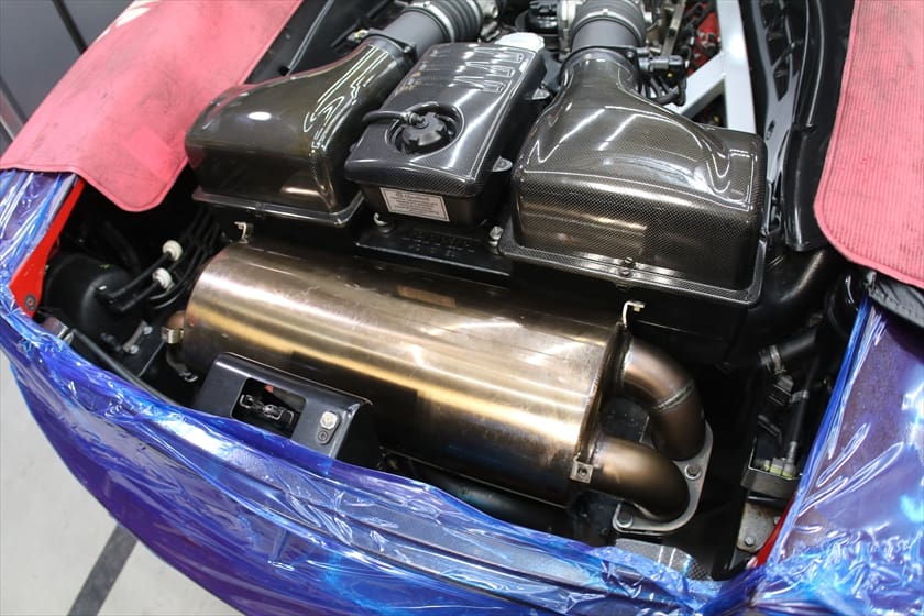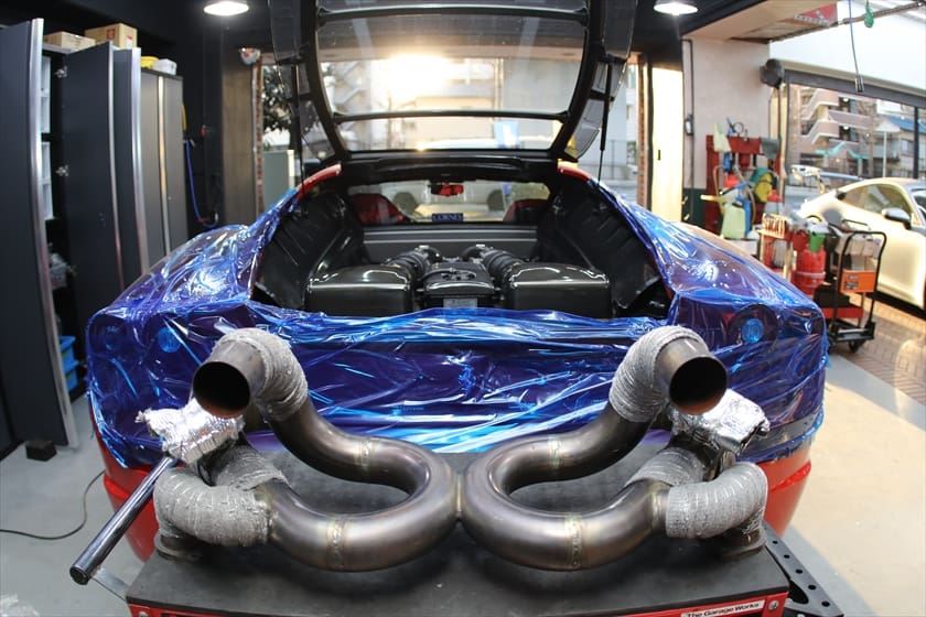 パワークラフトのエキゾーストシステムを装着済みのF430スクーデリアが入庫しました。熱で可変バルブが壊れ直管状態になっていたので、しっかりとバンテージとヒートブロックで熱対策を行い、負圧式から電気式のバルブへ変更。同時にスポーツCATも純正に戻し、ジェントルマン仕様に変更させて頂きました。直管から比べると、音質に物足りなさを感じますがご家族受けはいいかも?ですね^^; いつも有難うございます。