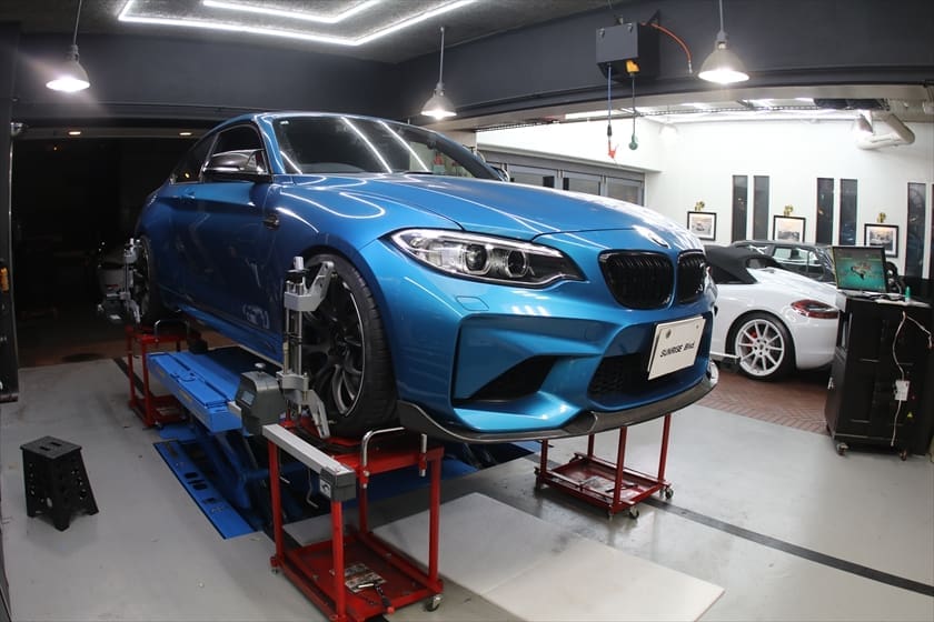 以前に BC RACINGのサスペンション をインストールさせていただいたF87 M2 が、今回は車検整備で入庫しました。
