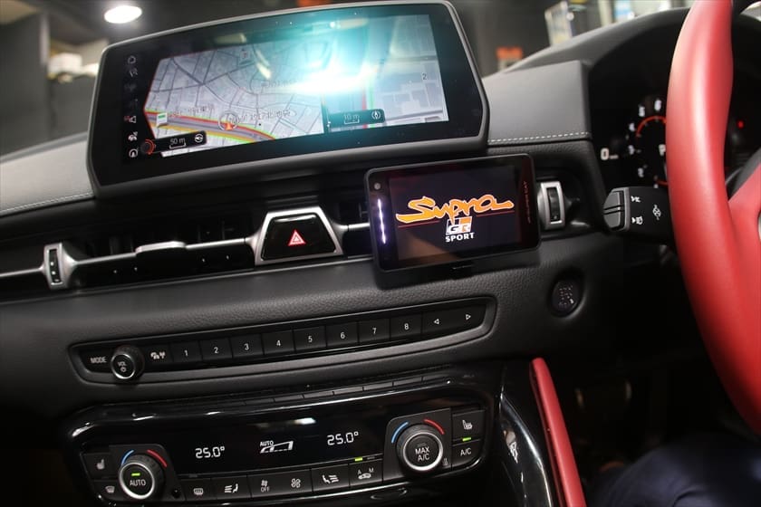 ご近所さんのスープラA90にユピテルのレーザーレーダー探知機ZK3100をインストールさせて頂きました。こちらZK3100はGPS&レーザーの受光部とモニターがセパレートのため、モニターをお好きな所へインストールが可能です。モニターは純正モニター下側の吹き出し口にスッキリとインストール。オープニングもGR SUPRAへ変更しました。この度は誠に有難うございました。