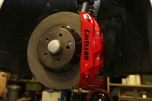 ARMASPEEDのブレーキを、フライス加工&カスタムペイントでcarlssonロゴに。